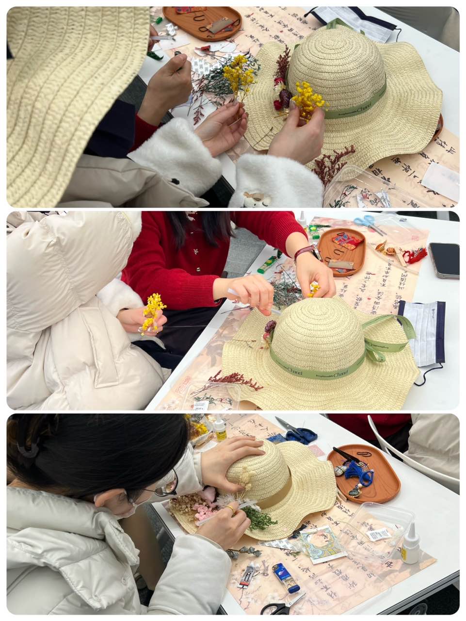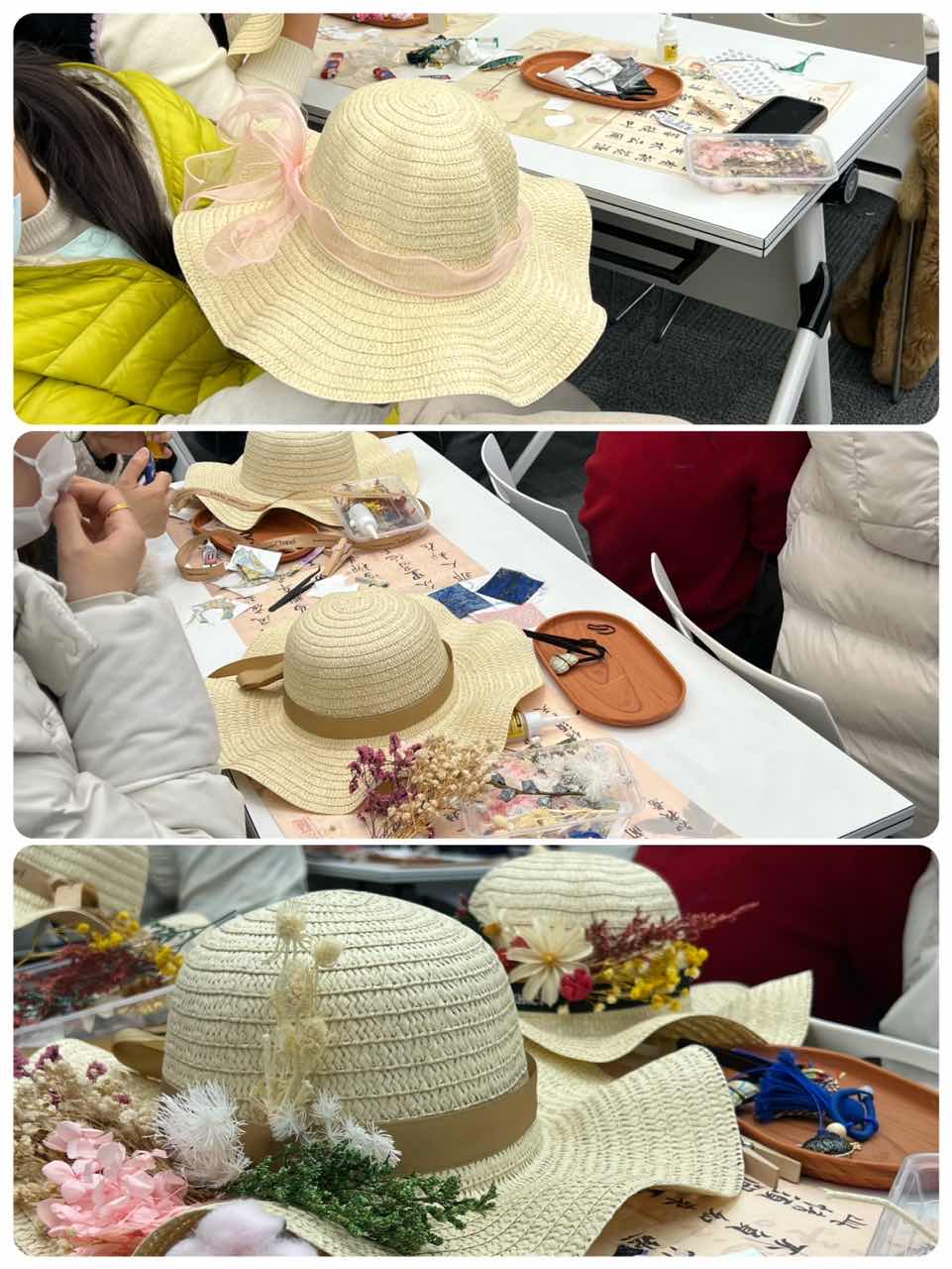 女职工们充分发挥想象力与创造力,根据自己的喜好挑选花朵、搭配装饰。大家相互帮忙、彼此启发,在欢声笑语中,一顶顶独具特色、风格各异的法式礼帽逐渐成型。当大家戴上自己亲手制作的礼帽,自信的笑容与优雅的姿态相得益彰,既展现了职场女性干练之外的温柔与精致,也在创作中释放了工作压力,收获了满满的成就感与幸福感。