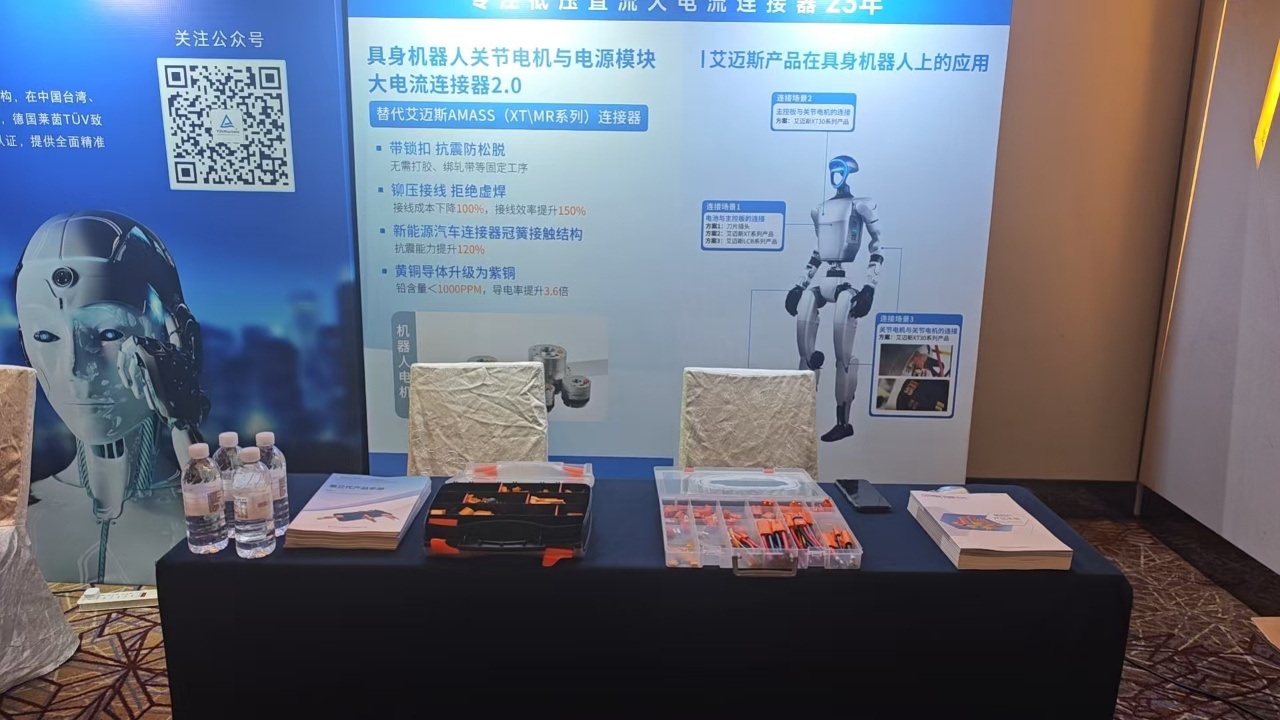 展会虽已收官,但艾迈斯对连接技术探索永不停步。未来,我司将继续深耕汽车级以下低压智能设备直流大电流连接领域,为人形机器人、AGV搬运机器人、商用清洁机器人、庭院机器人、智能机器狗等场景提供更可靠、更稳定、更安全的连接解决方案。